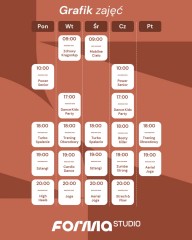 Forma Studio oferuje szeroki wybór zajęć dla każdego - od dynamicznych treningów po spokojniejsze formy ruchu. W ofercie znajdują się także poranne zajęcia dla seniorów, idealne na dobry start dnia i poprawę samopoczucia.