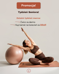 Promocja na start: - wszystkie zajęcia w marcu są darmowe - seniorzy: karnet na kwiecień tylko 89 zł (przy zakupie w marcu)